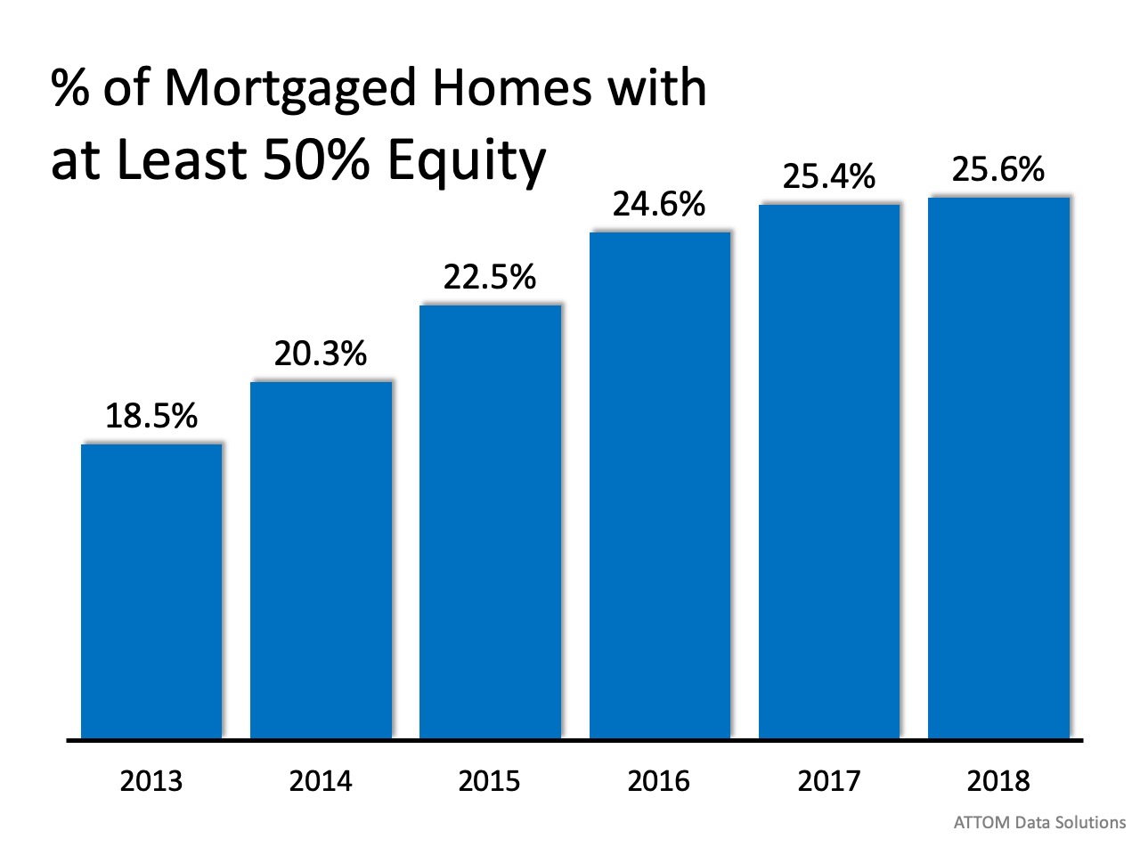 The number of homeowners that currently have at least 50% equity in their home is astonishing. According to the Urban Institute, 37.1% of all homes in the country are mortgage-free. In a home equity study, ATTOM Data Solutions revealed that of the 62.9% of homes with a mortgage, 25.6% have at least 50% equity. That number has been increasing over the last five years: