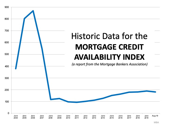 The Mortgage Bankers’ Association releases an index several times a year titled: The Mortgage Credit Availability Index (MCAI). According to their website:
