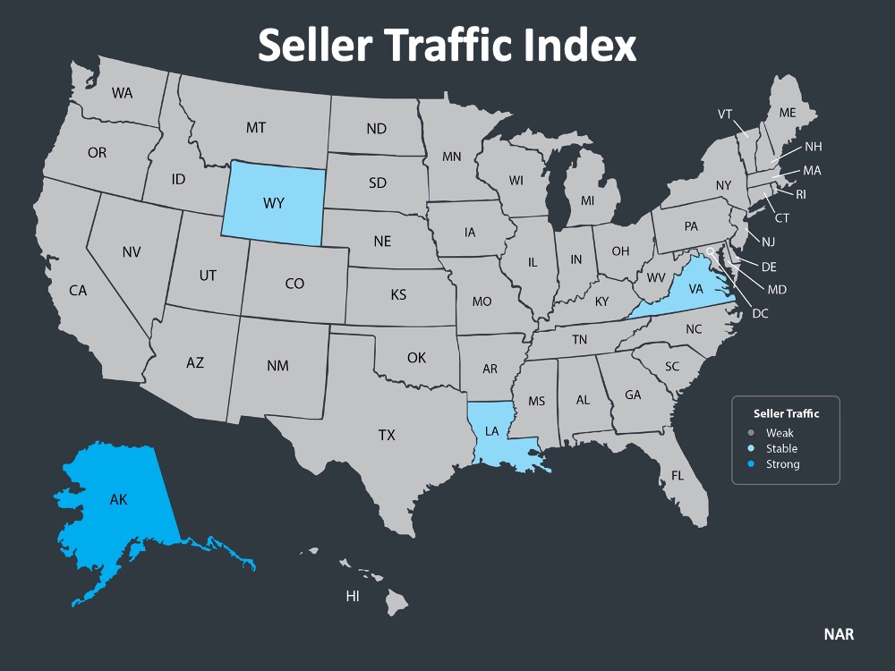 As the map above indicates, 46 states and Washington, D.C. reported ‘weak’ seller traffic, 3 states reported ‘stable’ seller traffic, and 1 state reported ‘strong’ seller traffic. This means there are far fewer homes on the market than what is needed to satisfy the needs of buyers looking for homes right now.