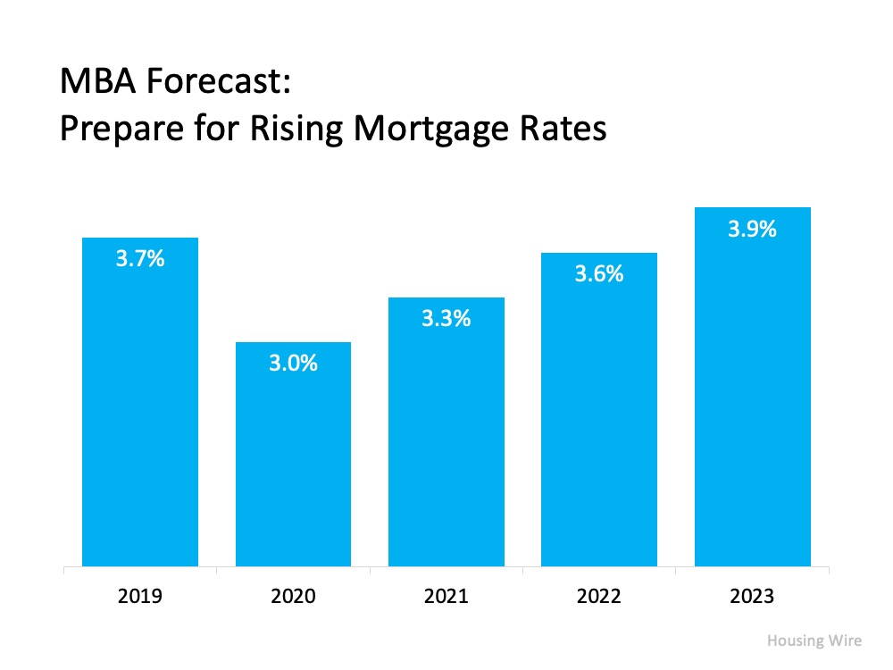 While rates are still lower today than they were one year ago, as the economy continues to get stronger and the pandemic is resolved, there’s a very good chance interest rates will rise again. Several top institutions in the real estate industry are projecting an increase in mortgage rates over the next four quarters (See chart below):